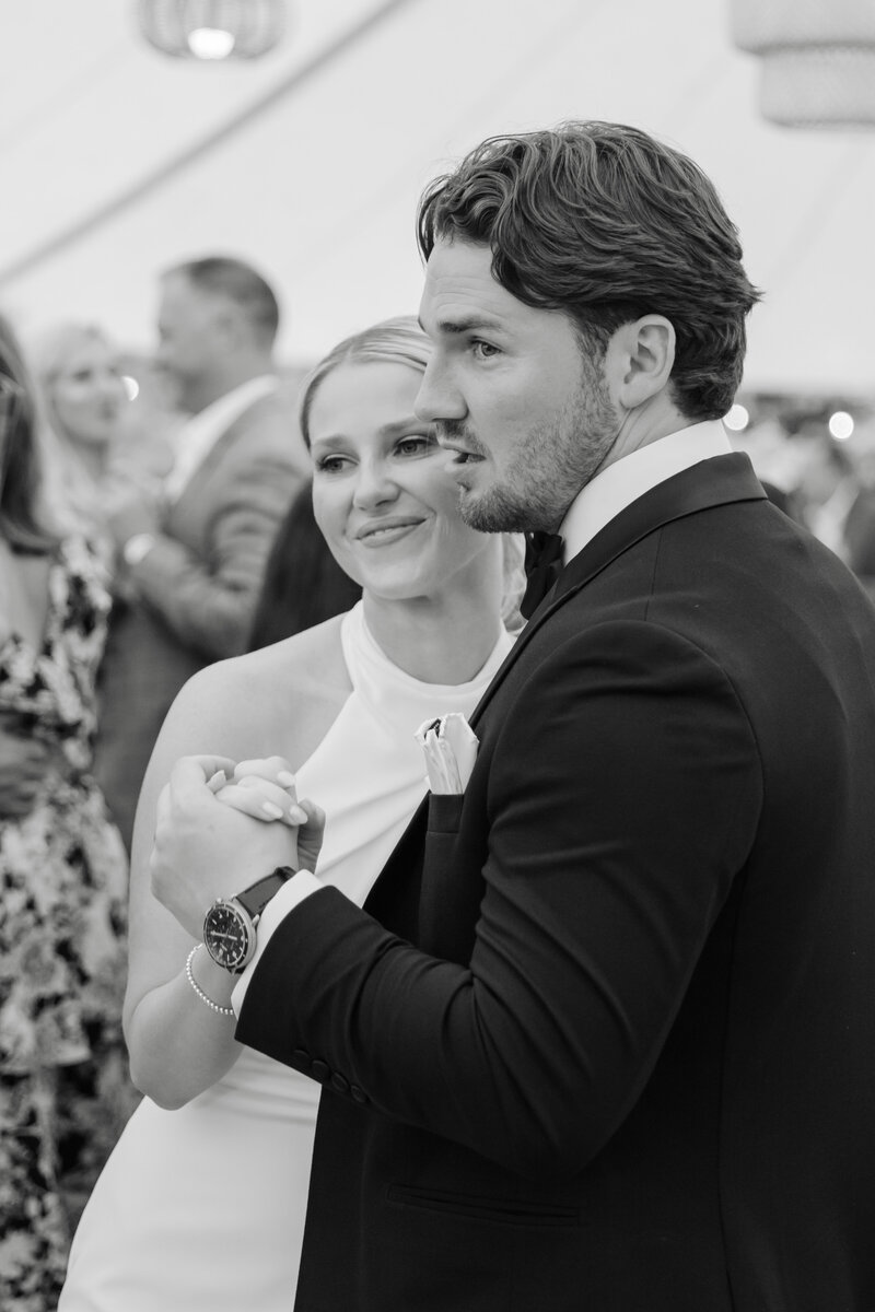 The modern, summer wedding of Maggie and Joe, planned by Moss Aria Designs, felt like a timeless family story at their lake house near Traverse City. The day was relaxed and elegant, beginning with laughter in the sunroom and beers down the road. Soft blues and creams harmonized beautifully with the tranquil lake view, creating a scene reminiscent of Martha’s Vineyard. The celebration felt intimate and genuine, as the couple embraced the heartfelt significance of their day.